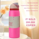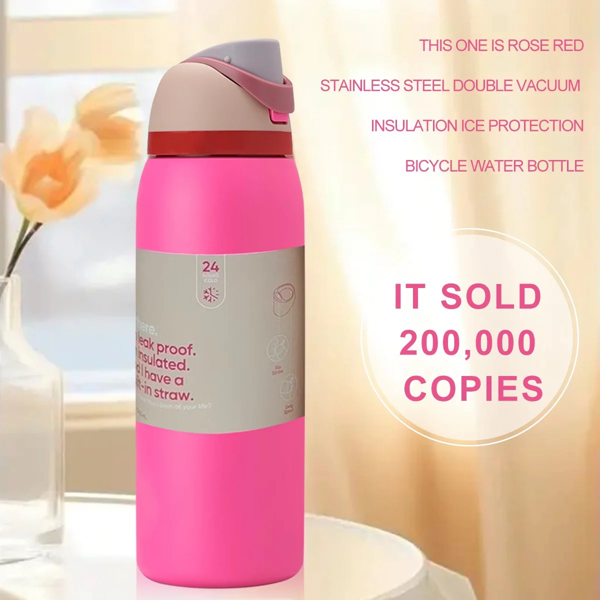 Owalaa rose red insulated stainless steel water bottle with straw,32oz,suitable for office workers,students,travel